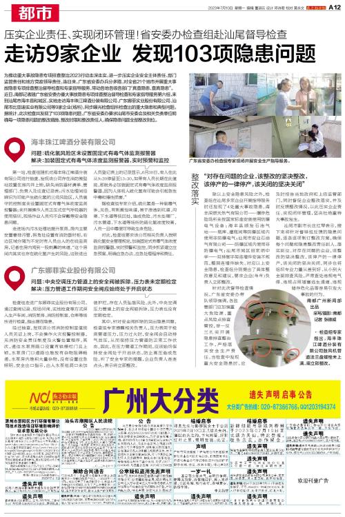 连日来,广东省安委办兵分多路,对全省21个地市开展重大事故隐患专项排查整治督导检查和专家指导服务,带动各地各级各部门“真查隐患、查真隐患”。