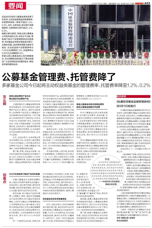 证监会8日发布公募基金费率改革工作安排,主动权益类基金的管理费率、托管费率将统一降至不超过1.2%、0.2%,此外,从即日起,新注册产品管理费率、托管费率分别不超过1.2%、0.2%。