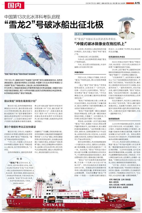 7月11日上午,国新办举行“权威部门话开局”系列主题新闻发布会,自然资源部副部长、国家海洋局局长王宏透露,中国第13次北冰洋科学考察队12日搭乘“雪龙2”号破冰船从上海出发,执行现场考察任务。