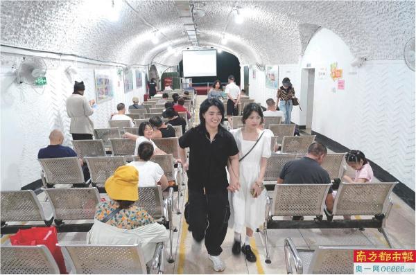 7月11日,杭州市民在四牌楼防空洞内避暑纳凉。