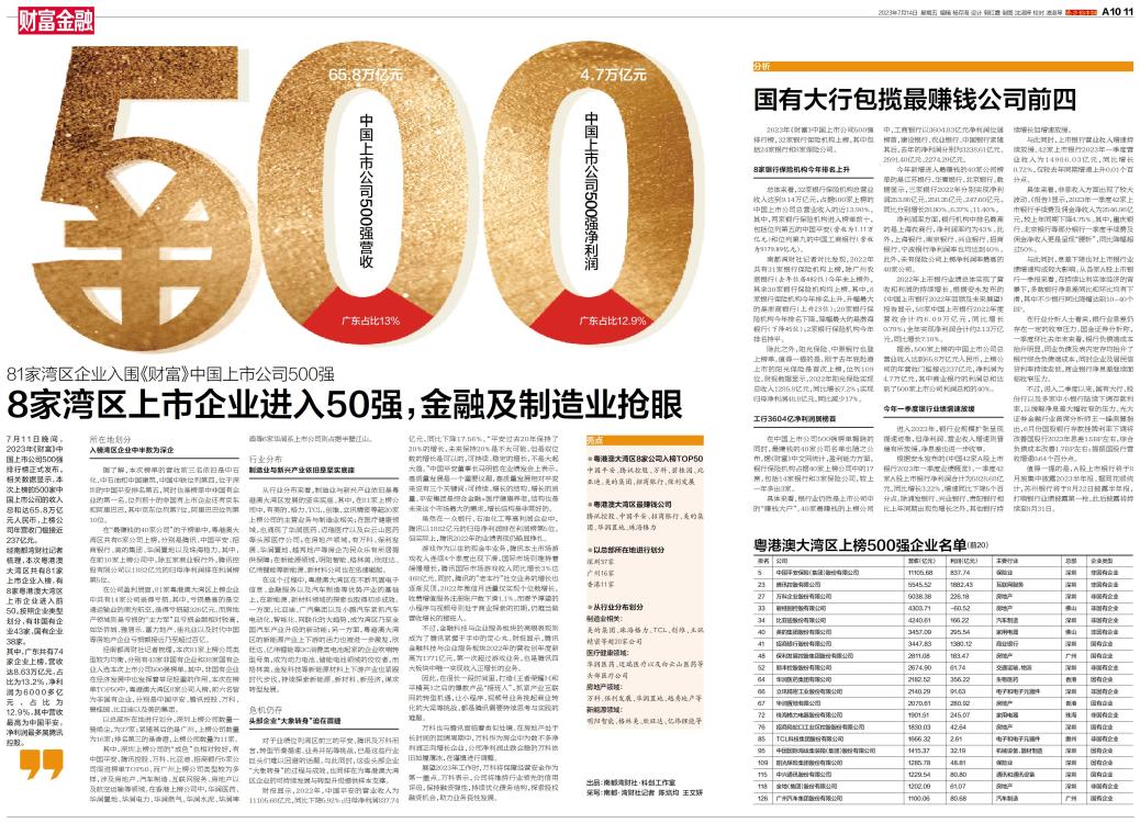 8家湾区上市企业进入50强,金融及制造业抢眼