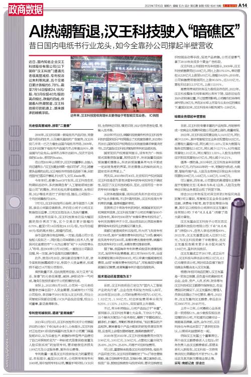 伴随着AI热潮暂退,汉王科技前行的航道上,越来越多的暗礁浮现。