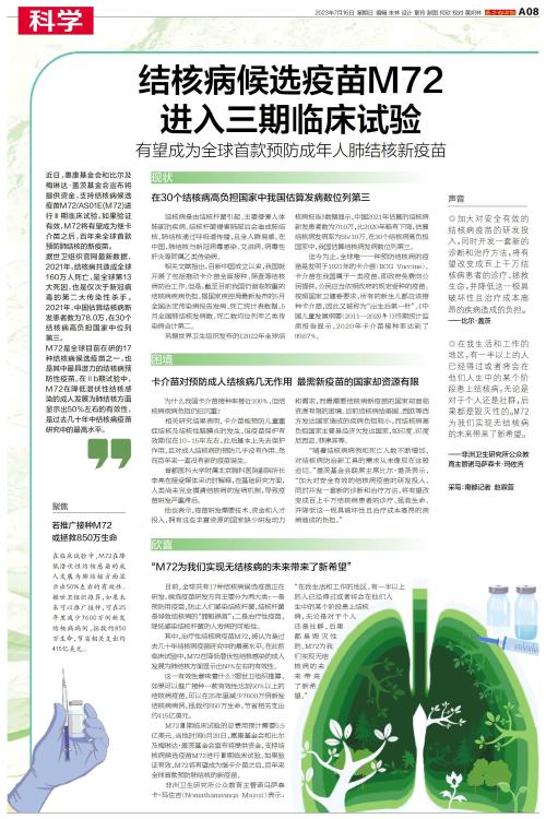 近日,惠康基金会和比尔及梅琳达·盖茨基金会宣布将提供资金,支持结核病候选疫苗M72/AS01E(M72)进行Ⅲ期临床试验。