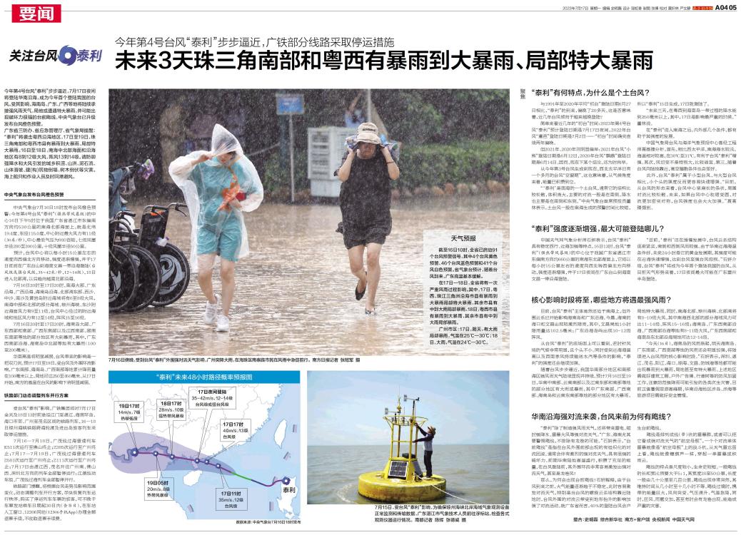 “‘泰利’是南海的一个土台风,通常它的结构比较松散,体积庞大,主要的对流一般是在南侧,降水也主要是在南侧和东侧。”中央气象台首席预报员董林表示,土台风一般在南海生成的预警时间比较短,所以“泰利”15日生成,17日就登陆了。