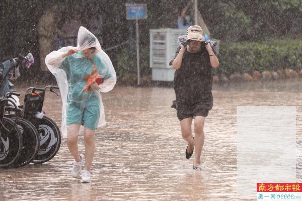 7月16日傍晚,受到台风“泰利”外围强对流天气影响,广州突降大雨,在海珠区南泰路市民在风雨中急促前行。 南方日报记者 张冠军 摄