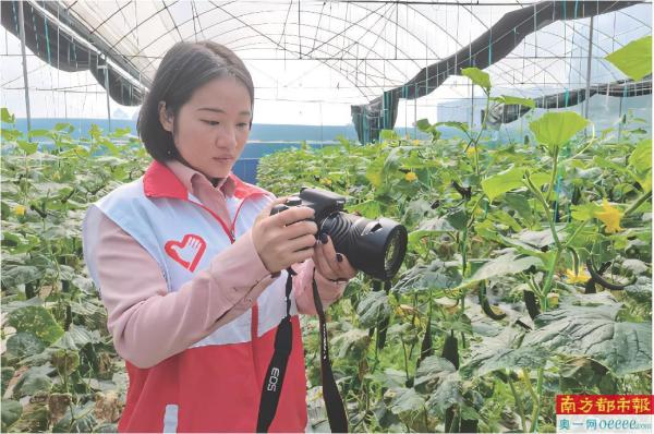 何艺珊为农产品拍摄“形象照”。