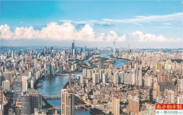 蓝天映照下的广州珠江两岸。 南都拍客 熊嘉诚 摄