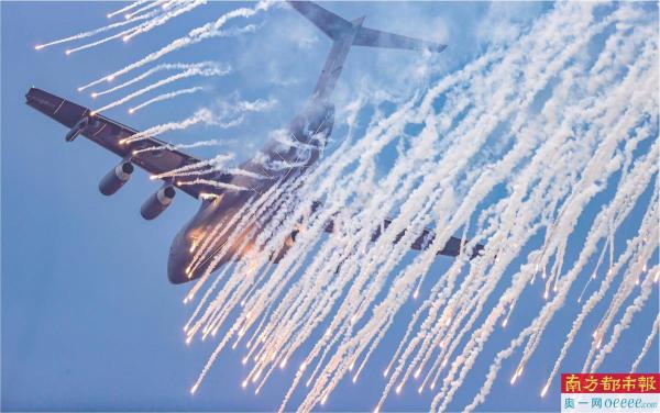 此次,运油-20的单独表演也引起了注意。它在低空中释放出红外干扰弹,场面如烟花般绚烂。据了解,在实战环境中,飞机释放红外干扰弹的同时以大坡度、小半径上升转弯,可以使飞机尽早脱离威胁,提高运输机战场生存能力。