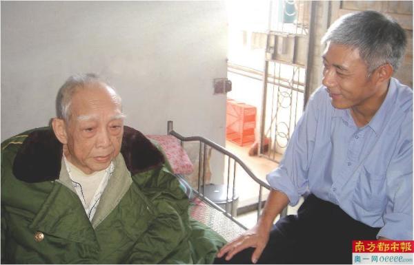 2007年,余发海(右)看望烈士覃汉坤的哥哥覃汉珍。