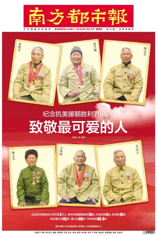 从化区在册退役士兵约1.4万人,其中抗美援朝老兵14名,已去世的4名,在世的10名。