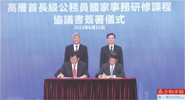 6月15日,香港特区政府公务员事务局与国家行政学院在港签署高层首长级公务员国家事务研修课程协议书。 图源:李家超微博