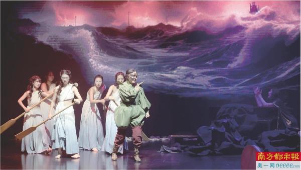 当代诗剧的演绎,少不了影像的在场。“我尝试打破传统的舞台设计框架,创造一种全新的视觉体验。我借用了人工智能,创造出了层叠的海浪、璀璨的星空、庄严的神殿、战争的硝烟和女性的泪水,形成了一个动态的,感人的舞台背景”,柯咏恩这样叙述她的影像理念。