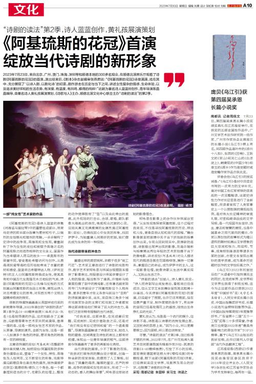 2023年7月23日,来自北京、广州、澳门、珠海、深圳等和顺德本地的300多名观众,在顺德北滘音乐厅观看了诗剧《阿基琉斯的花冠》的首演。