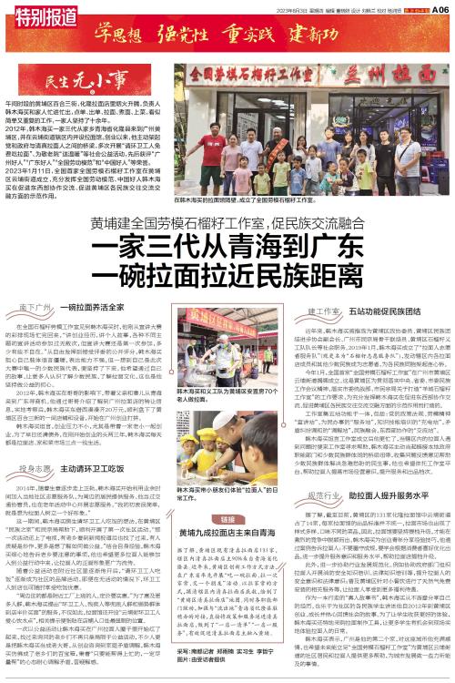 韩木海买坦言工作室成立后他更忙了,当辖区内的拉面人遇到问题时便来工作室寻求帮助,韩木海买主动当起链接本地政府职能部门和少数民族群体间的桥梁纽带,收集问题反馈意见帮助少数民族群体解决急难愁盼的民生事,他也希望依托工作室平台,帮助拉面人提高市场经营意识,提升服务和出品档次。