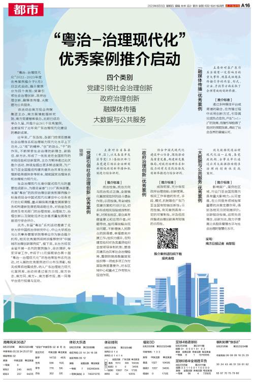 “粤治-治理现代化”2022-2023年度优秀案例推介于8月3日正式启动,推介案例分为四个类别:党建引领社会治理创新、政府治理创新、融媒体传播、大数据与公共服务。