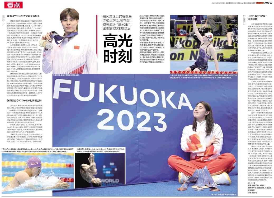 2023年国际泳联世锦赛8天的比赛精彩纷呈,高光时刻此起彼伏。