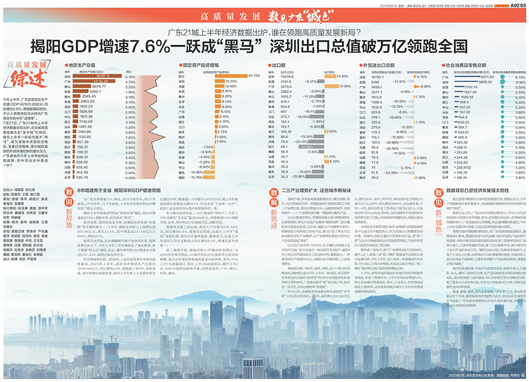 提速、提量、提质,再为未来谋势,“半年考”已过,更大的考验还在下半场。继续保持经济的韧性与活力,充分认识自身的不足与短板,广东各地市需继续火力全开,稳住基本盘,争取在年末交出全新经济成绩单。
