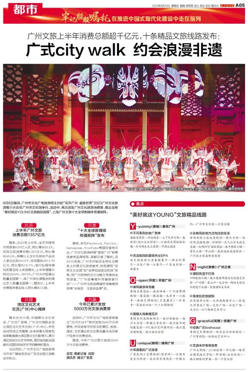 8月8日晚间,广州市文化广电旅游局主办的“花开广州 盛放世界”2023广州文化旅游推介大会在广州市文化馆举行。