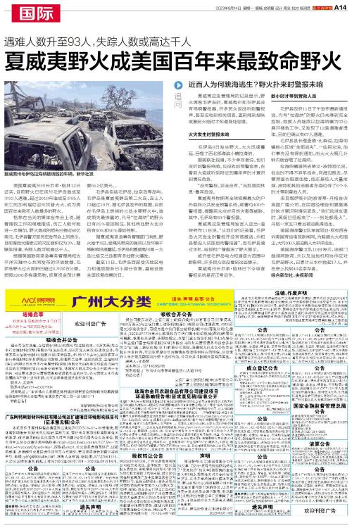 美国夏威夷州州长乔希·格林12日证实,目前野火已在该州毛伊岛造成至少93人遇难,超过2018年造成至少85人死亡的加利福尼亚州坎普大火,成为美国百年来致死人数最多的野火。