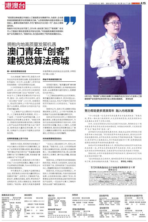 陈振杰1992年出生于澳门。2014年,他在澳门创立了“极视角”,专注于人工智能计算机视觉算法开发与应用。