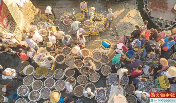 早上7点,湛江渔人码头一片热火朝天的景象,当地人与“尝鲜”的游客特地来“赶早市”。 南都拍客 王建中 摄