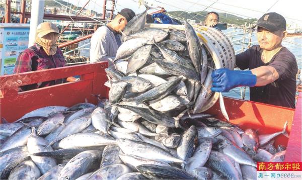 阳江闸坡渔港,渔民将鲜鱼装车运至海鲜交易市场。 南都拍客 蒋春桥 摄