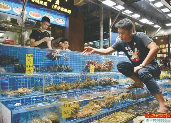 广州黄沙水产交易市场,档主按照海蟹的个头进行分类。 南都拍客 关利生 摄