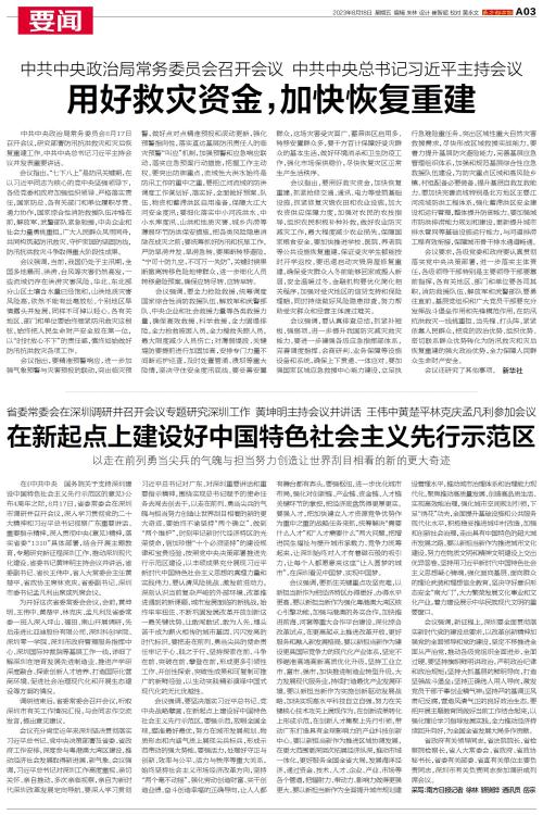 中共中央政治局常务委员会8月17日召开会议,研究部署防汛抗洪救灾和灾后恢复重建工作。
