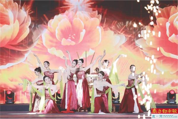 8月17日晚,广州天河区珠村七夕文化广场,2023广州乞巧文化节开幕式上的主题舞蹈《对影穿针》。本届乞巧节以“七夕天河·出彩广州”为主题,包括全息灯光秀、文艺汇演、民俗表演、七夕游园会等丰富多彩的活动。