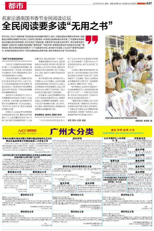 8月19日,2023“书香岭南”全民阅读论坛在南国书香节上举行。