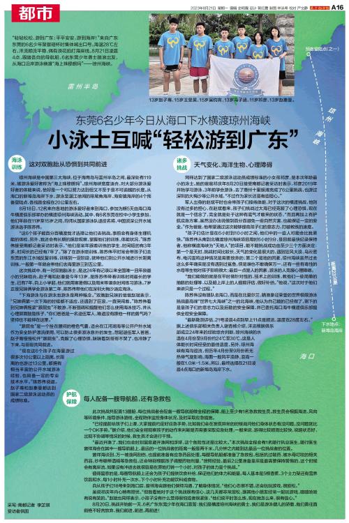8月21日凌晨4点,跟随各自的导航船,6名东莞少年勇士踏浪出发,从海口沿岸游泳横渡“海上珠穆朗玛”——琼州海峡。