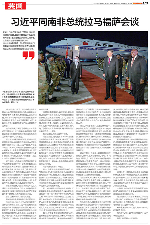 当地时间8月21日晚,国家主席习近平抵达约翰内斯堡,出席金砖国家领导人第十五次会晤并对南非进行国事访问。