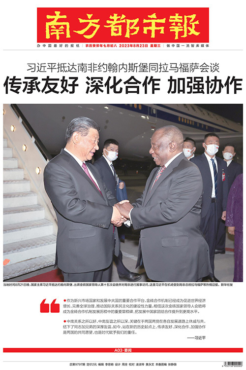 当地时间8月21日晚,国家主席习近平抵达约翰内斯堡,出席金砖国家领导人第十五次会晤并对南非进行国事访问。