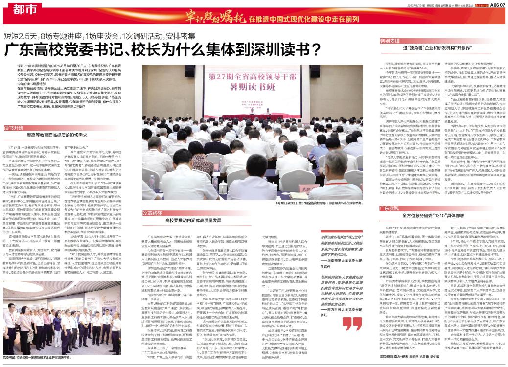 8月18日至20日,广东省委组织部、广东省委教育工委举办的全省高校领导干部暑期读书班开到了深圳,全省约300名高校党委书记、校长一起学习。