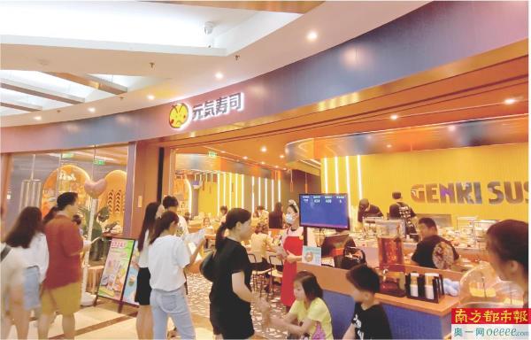 正佳广场内的“元气寿司”,顾客在排队等位。南都记者 张思琦 摄