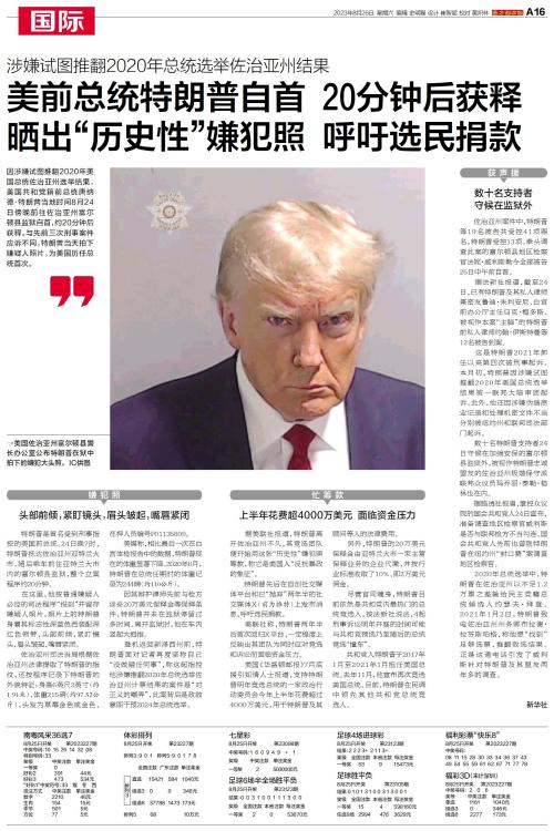 因涉嫌试图推翻2020年美国总统佐治亚州选举结果,美国共和党籍前总统唐纳德·特朗普当地时间8月24日傍晚前往佐治亚州富尔顿县监狱自首,约20分钟后获释。