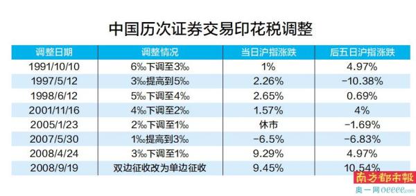 因此,中银证券分析师张天愉说,根据A股交易印花税历经3次上调和6次下调,多发生于市场过热和过度低迷时期。