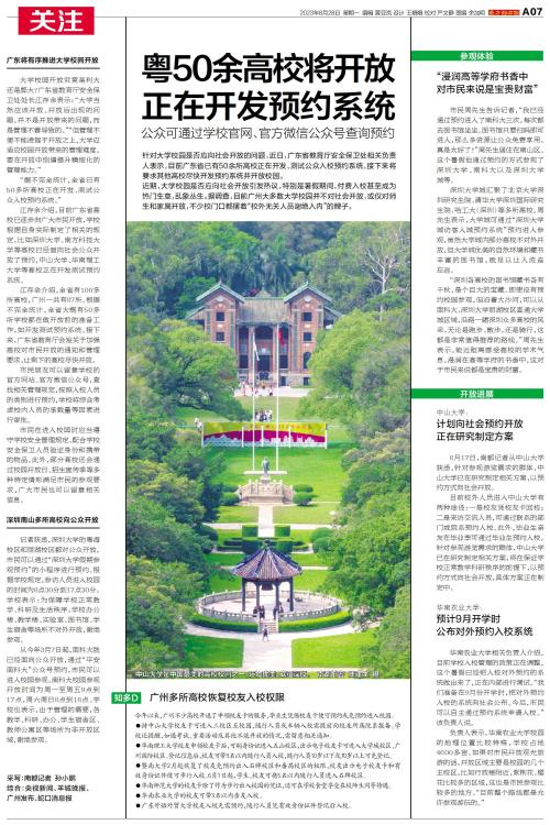 针对大学校园是否应向社会开放的问题,近日,广东省教育厅安全保卫处相关负责人表示,目前广东省已有50余所高校正在开发、测试公众入校预约系统,接下来将要求其他高校尽快开发预约系统并开放校园。