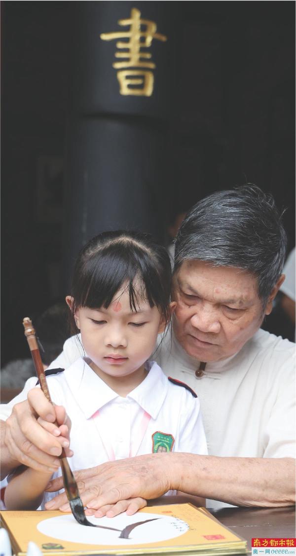 8月28日,广州市越秀区朝天小学一年级新生入学开笔礼在番禺学宫举行,名师开笔启蒙。 南都记者 冯宙锋 摄