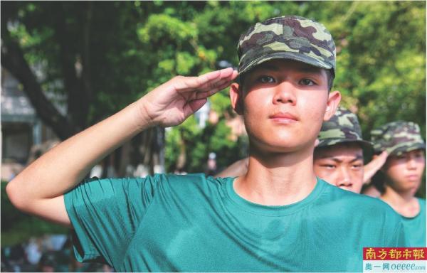 8月23日,佛山南海九江中学开学军训。南都拍客梁平 摄