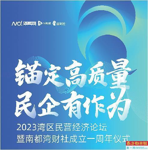 锚定高质量,民企有作为。8月30日上午9:30,2023湾区民营经济论坛暨南都湾财社成立一周年仪式(深圳场)将在深圳SIC深湾睿云中心举办。活动由南方都市报社、南都湾财社联合博商管理科学研究院主办。9月,南都湾财社一周年(广州场)还将举办“湾区美好生活之夜”,探讨消费新趋势。