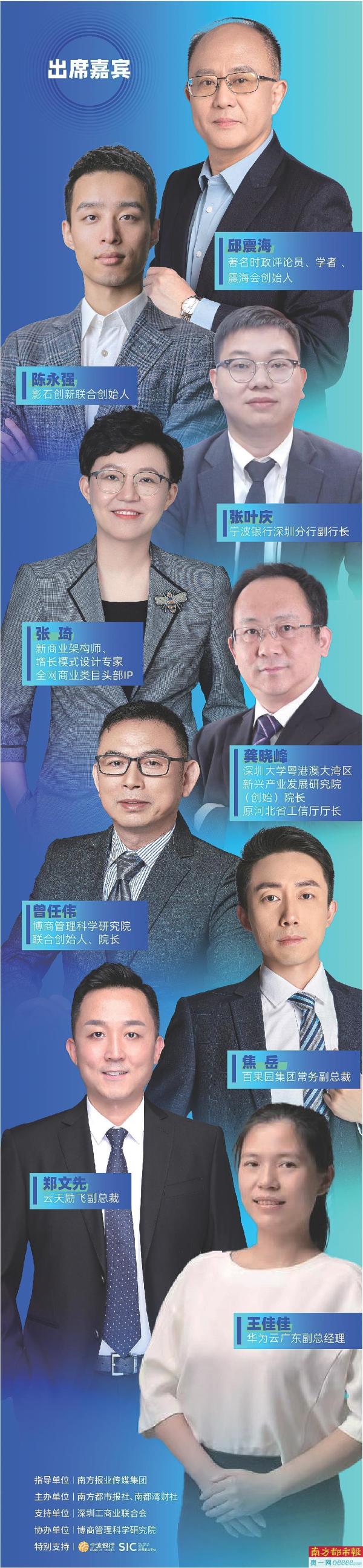 活动邀请了著名时政评论员、学者、震海会创始人邱震海;全网商业类目头部IP、新商业架构师、增长模式设计专家张琦;企业家代表影石创新联合创始人陈永强,以及金融机构代表宁波银行深圳分行副行长张叶庆发表主题演讲。