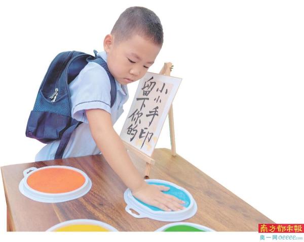 光明区东周幼儿园通过按手印等有意义的开学仪式,见证孩子们的成长。
