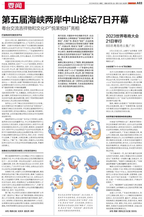 9月4日上午,第五届海峡两岸中山论坛新闻发布会在中山举行,寓意粤台两地融合发展越来越好的粤台交流吉祥物和文化IP“悦莱悦好”亮相,将在第五届海峡两岸中山论坛首次使用。