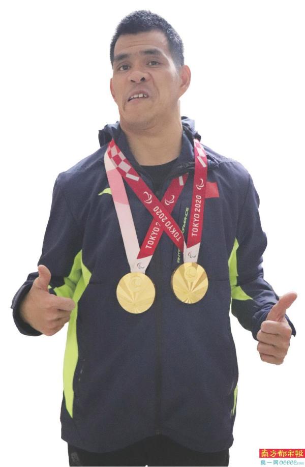 陈健新与他的两枚东京残奥会金牌。
