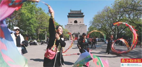 首届兰花奖终评会的外籍评委受邀参观故宫、景山、钟鼓楼、天坛等中轴线地标。嘉宾体验老北京民俗——舞龙。 中国外文局供图