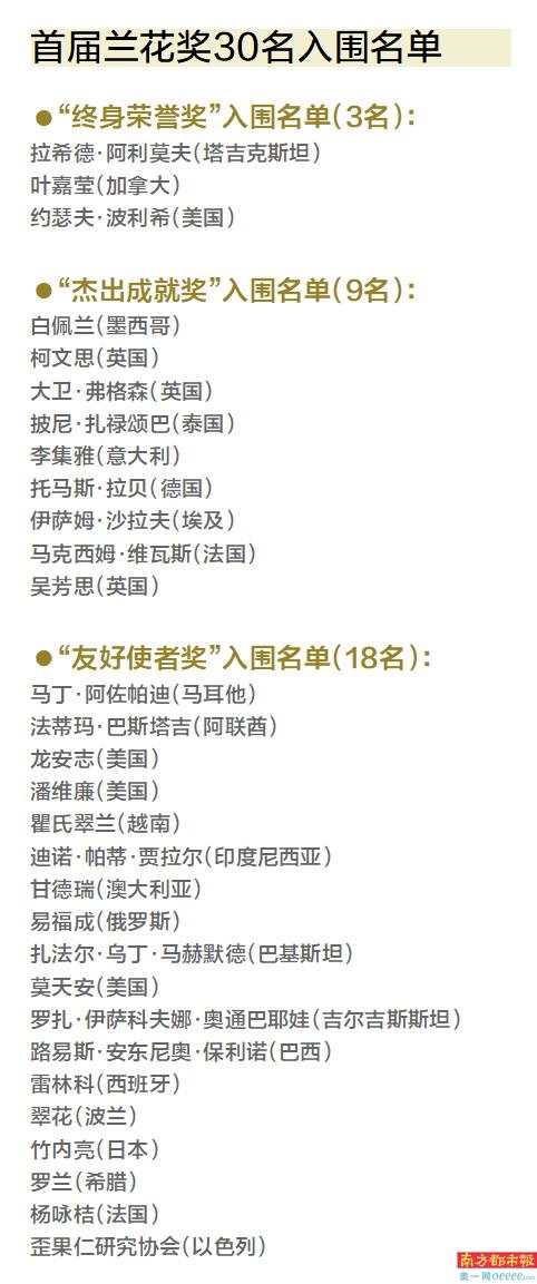 陈实告诉南都记者,首届兰花奖的参评对象成果丰硕、贡献卓著,具有广泛的国际影响力和声誉。“其中,200多人曾经获得过多个国内外的重要奖项。”