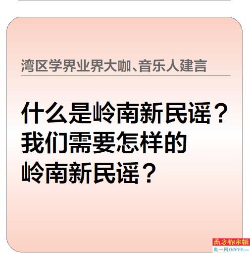 与非门乐队创始成员及制作人阿庆表示,要创作岭南新民谣,可以从“民”和“谣”出发:“岭南的‘民’是什么样的民,岭南的‘谣’和曲调是什么,把这些元素提取出来,融入新的音乐形式,产生新的东西。”