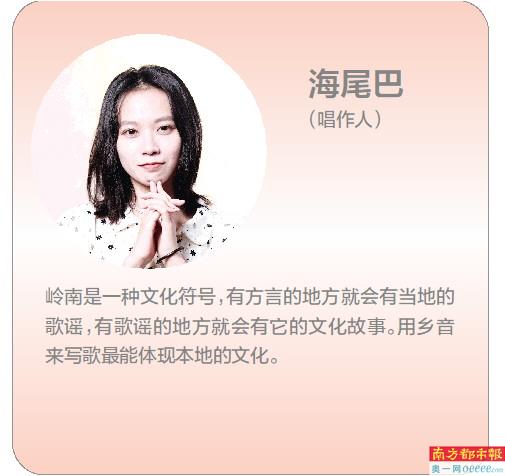如何写一首民谣,更好地传唱岭南?原创音乐人、音乐公司高管、方言学专家们也表达了自己的想法。“岭南是一种文化符号,有方言的地方就会有当地的歌谣,有歌谣的地方就会有它的文化故事。”来自汕尾的歌手海尾巴称自己喜欢挖掘当地旧歌谣,将它们老歌新唱,加入自己的理解。