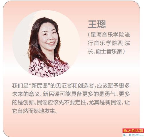 在星海音乐学院流行音乐学院副院长、爵士音乐家王璁看来,身处新时代的我们正是“新民谣”的见证者和创作者,新民谣具备更多的应该是勇气和创新。“民谣应该先不要定性,尤其是新民谣,让它自然而然地发生。”